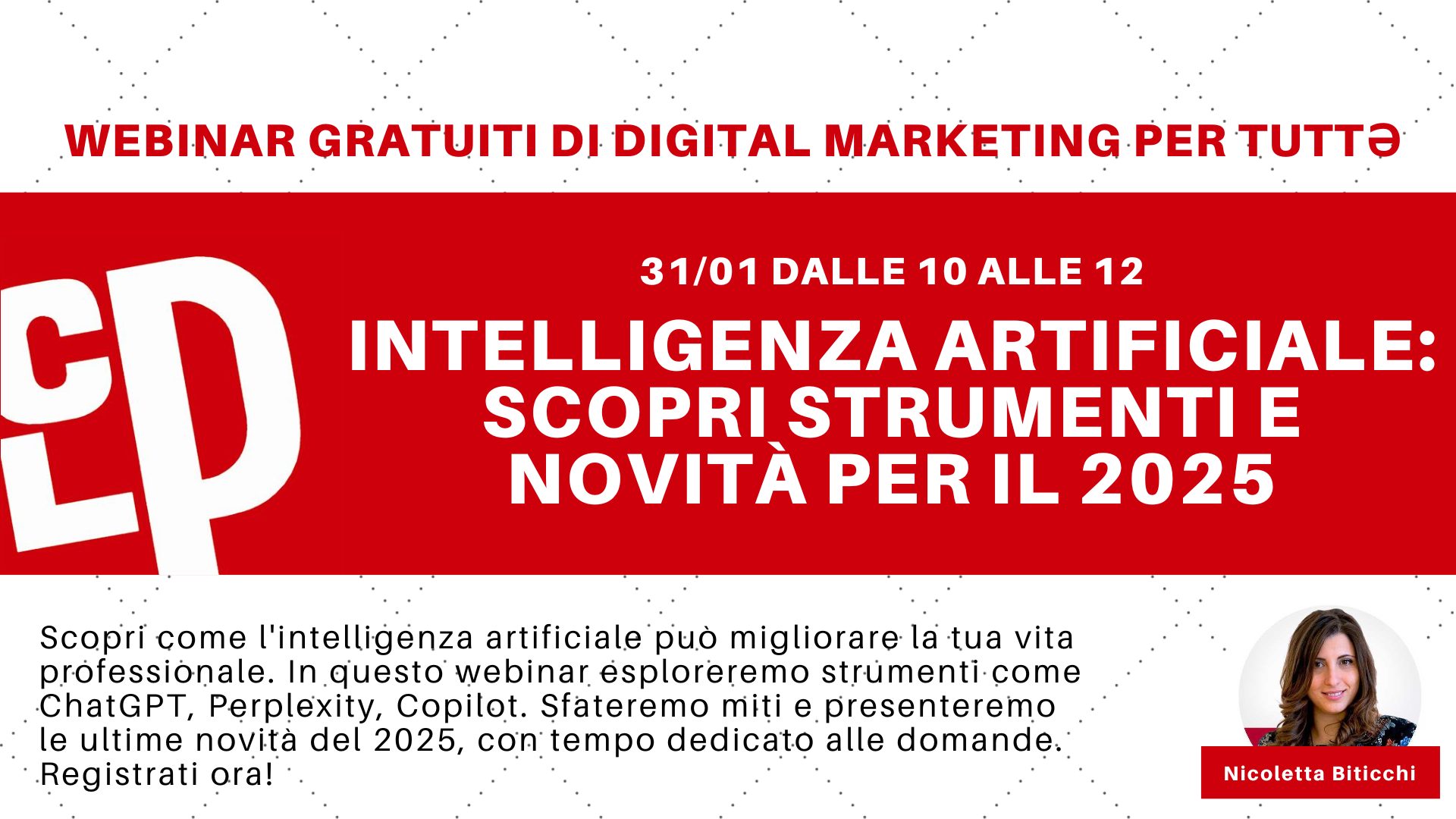 CLP inaugura il 2025 con un webinar gratuito dedicato a esplorare le potenzialità dell’intelligenza artificiale e le novità più recenti del settore.